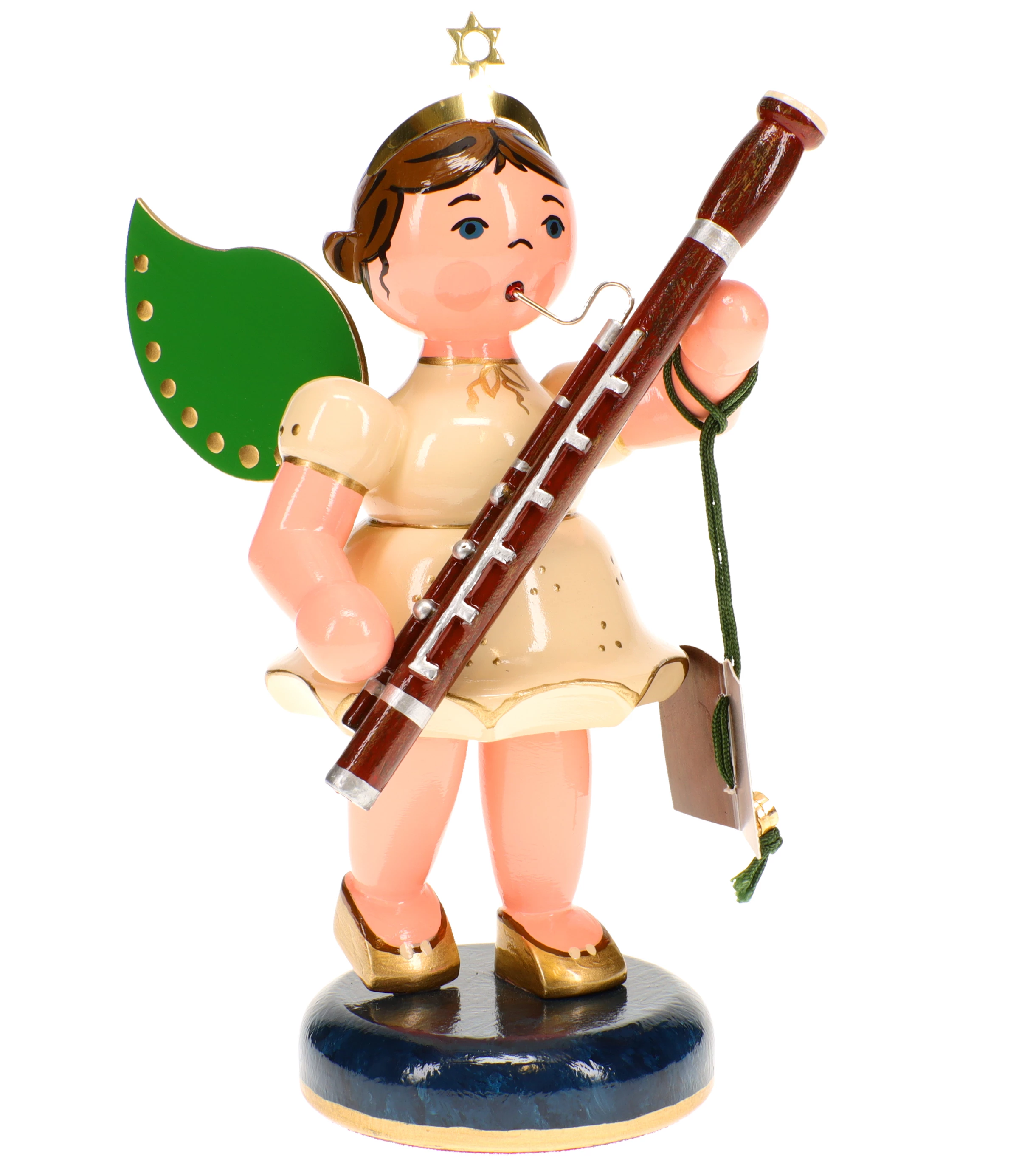 Erleben Sie den „Hubrig Engel mit Fagott“ – eine zauberhafte Miniatur, die das harmonische Zusammenspiel von Kunstfertigkeit und Festtagsfreude verkörpert. Dieser kleine Engel steht stolz mit seinem detailgetreu gestalteten Fagott und bringt die sanften Klänge eines weihnachtlichen Orchesters in Ihr Zuhause. Die grünen Flügel und der goldene Stern auf seinem Kopf verleihen ihm eine himmlische Ausstrahlung, die den Betrachter in eine besinnliche Weihnachtswelt entführt.